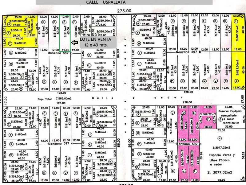 LOTE DE 12 x 43 MTS - SUP. TOTAL 516 M2